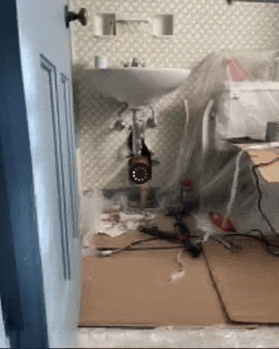 И рядом стенка русхуячена как попало неаккуратно совсем и кот торчит оттудова...
