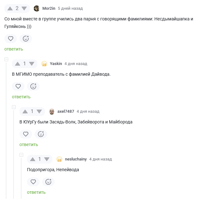 Я видел однажды человеков с фамилияме: