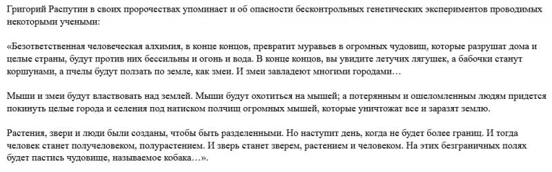Кцатате, Григорiй Распутинъ предсказывал, что в будущем создадут некую "кобаку".
